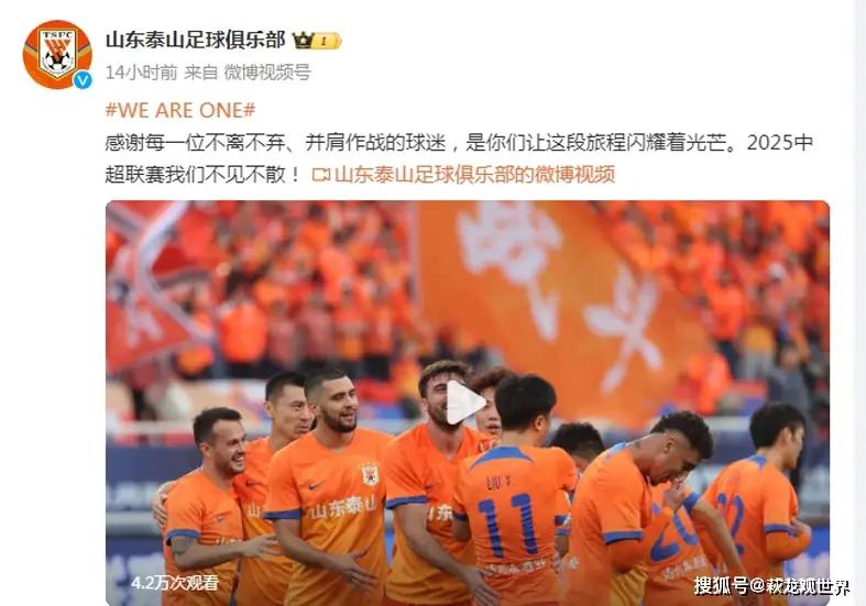 泰山俱乐部发布了球队2024赛季中超进球集锦,并这样写道:“感谢每一位不离不弃、并肩作战的球迷,是你们让这段旅程闪耀着光芒。2025中超联赛我们不见不散!”既然是“不见不散”,说明明年中超肯定还会出现泰山队的身影。也让那些将矛头指向泰山队,希望泰山队降级的人失望了。泰山当下好好准备足协杯!