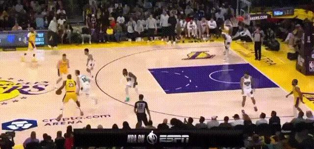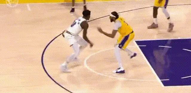 身背5犯的浓眉在第四节过半时回到场上,湖人也开始了我们熟悉的詹眉配合。