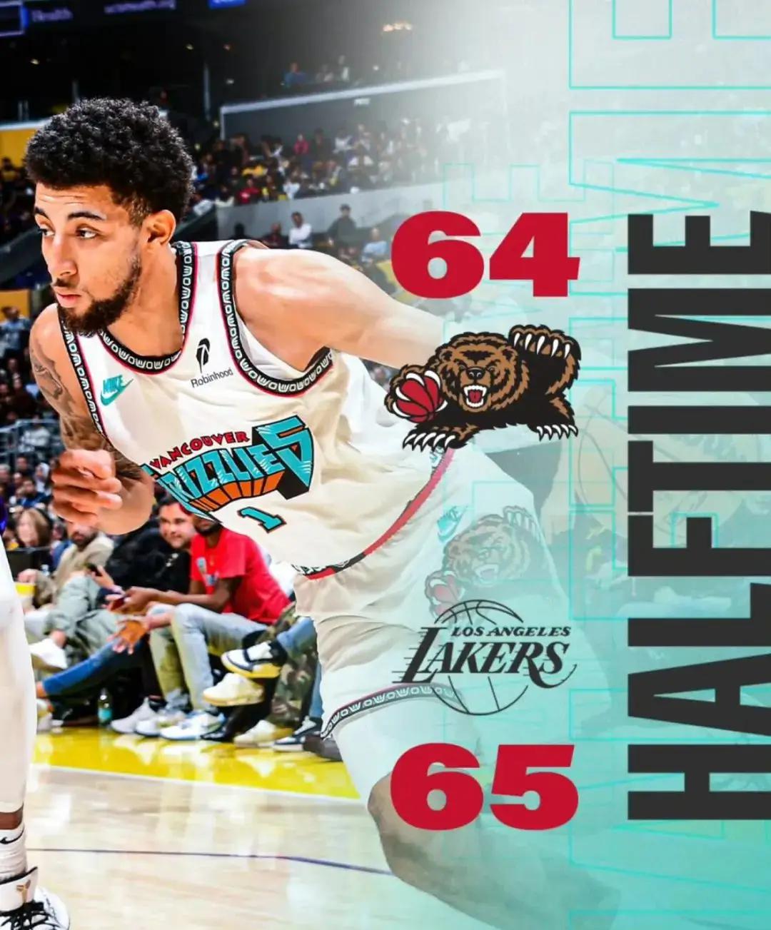 凭借着3J和扎克伊迪针对内线的强攻得手,灰熊在上半场结束前追上了分差,65比64,湖人的领先最终被蚕食到只剩1分。