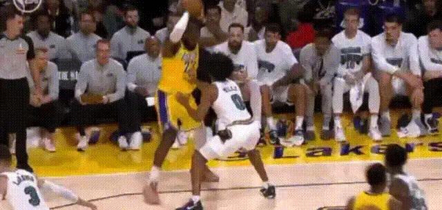 而在克内克特改变局势之后,詹姆斯也开始了对于比赛的主导,他多次完成了1打2的进攻,连续的冲框之下,湖人再次建立起了分差。