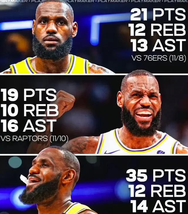 此前三场比赛中,詹姆斯分别有着21分12篮板13助攻、19分10篮板16助攻和35分12篮板14助攻的出色表现。