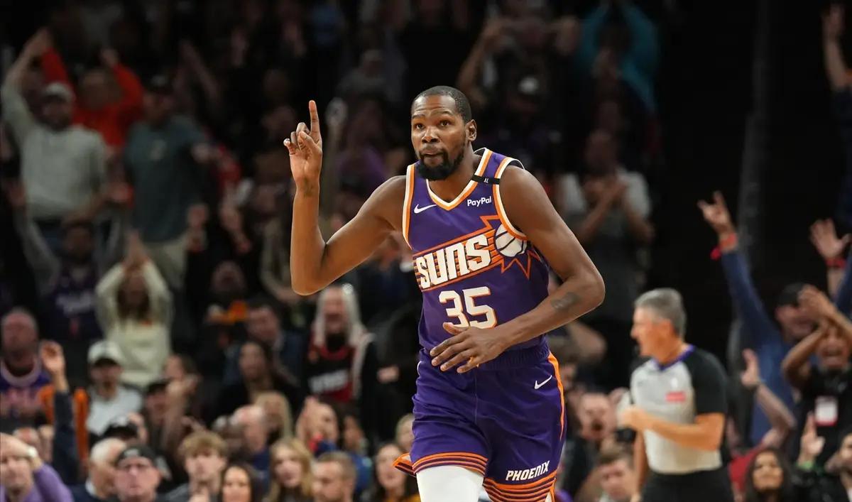 随着兰德尔的决胜三分压哨入网,菲尼克斯太阳奋斗整场的努力随之付诸东流,吞下三连败后,他们最近5场的战绩来到了1胜4负,赢下的仅仅是西部垫底的爵士。而在此之前,太阳可是豪取七连胜、进而登顶西部;如今却被湖人反超,掉出了西部前四之列。前后的转折就源于凯文-杜兰特因为左小腿拉伤而缺席了比赛。简而言之,有没有KD,太阳是两支不同的球队。