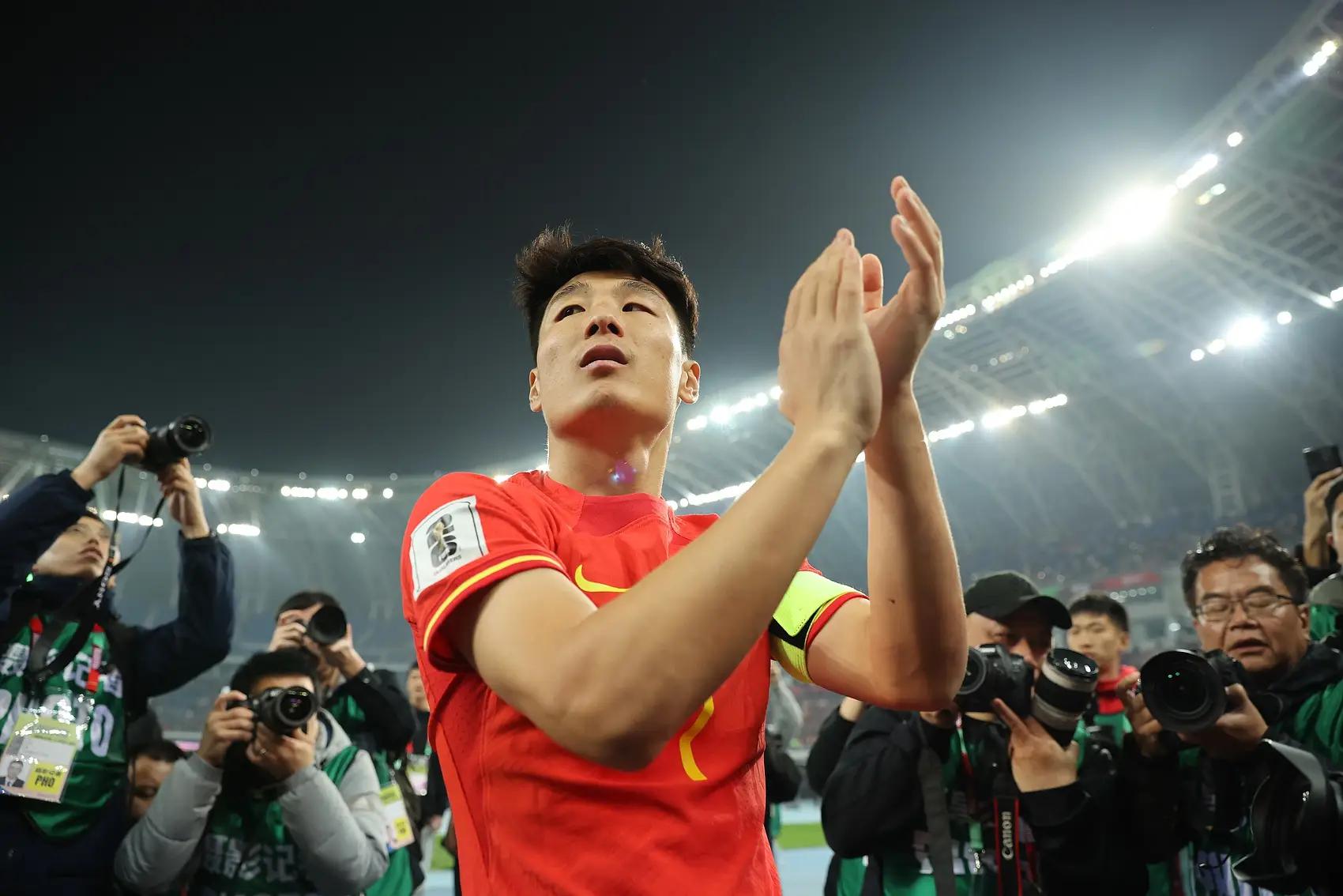 3月,世预赛中国4-1新加坡,进球功臣武磊赛后谢场。图/VCG