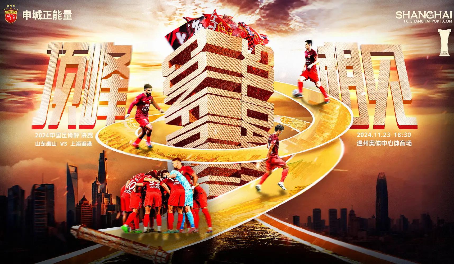 北京时间11月23日晚(今晚)18时30分,2024年中国足协杯决赛在温州奥体中心体育场上演,中超头号土豪上海海港将与老牌球队山东泰山争夺冠军。