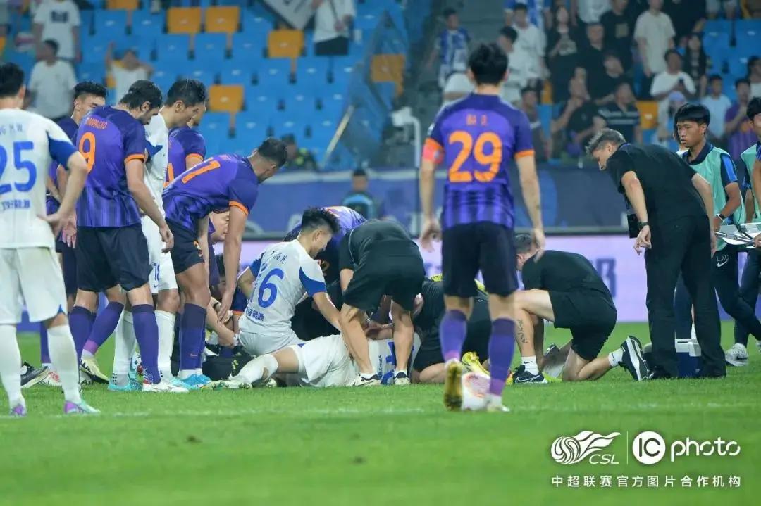 2024华润怡宝中超联赛第11轮武汉三镇主场迎战山东泰山的比赛中,武汉三镇队员艾菲尔丁与队友王毅在防守时头部相撞,双方均受伤倒地。山东泰山队医迅速进场,与武汉三镇队医一起救治伤员,山东泰山队长郑铮跑至场边和武汉赛区工作人员一起挪开了栏杆,方便救护车进场;山东泰山守门员王大雷则协助医生将伤员从担架转移至转运车,向受伤的对手球员提供力所能及的帮助,球迷也为他们的举动献上掌声。