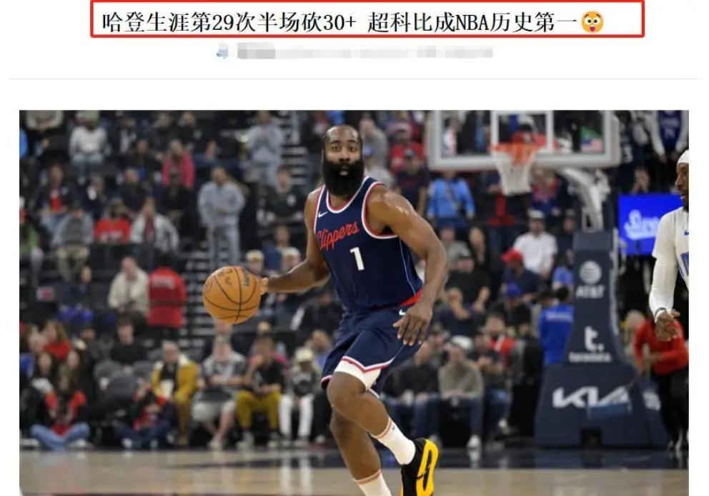 哈登在本场比赛中不仅完成了令人惊叹的得分表演,还创造了多个历史新纪录。首先,在上半场砍下31分之后,他超越了科比·布莱恩特(Kobe Bryant),成为NBA历史上半场得分达到30 次数最多的球员,达到了29次,超过了科比的28次。这项纪录的含金量无疑是巨大的,毕竟在NBA的历史长河中,能够做到这一点的球员,除哈登外,只有科比和詹姆斯。