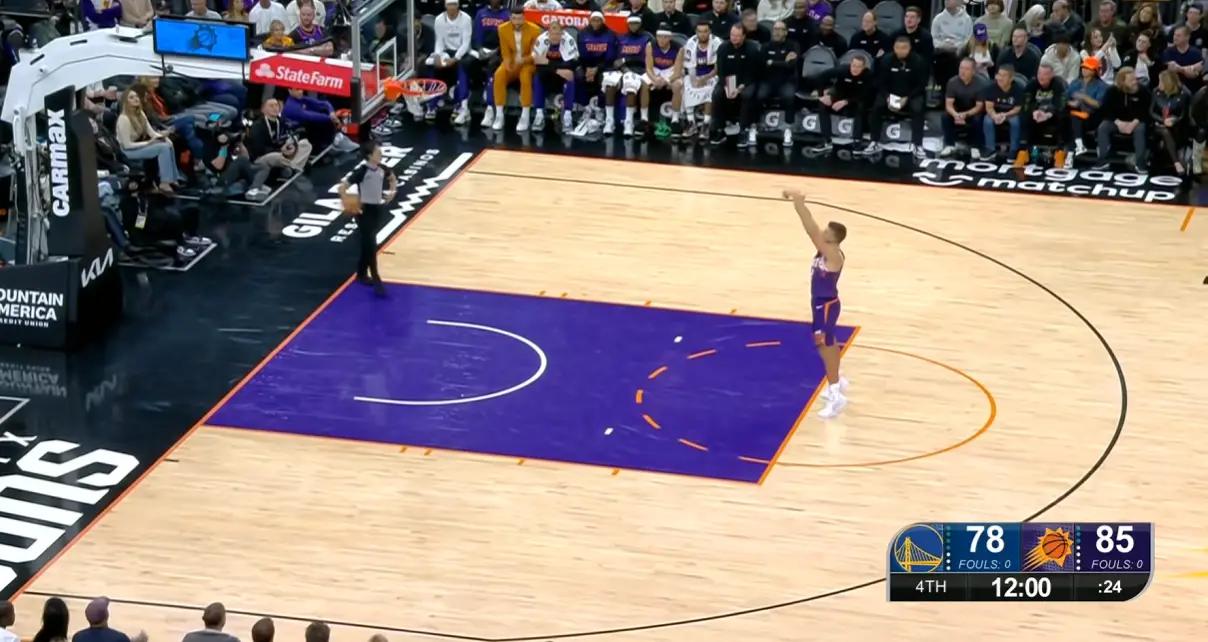 此时连解说员都震惊了,不知道发生了些什么,你要是技术犯规就罚一个球,怎么罚了俩呢?后面才知道原来是第3节还剩55秒的时候,勇士队的库明加在防守太阳队阿伦时有一个犯规的情况,但是当时太阳队去发了界外球。