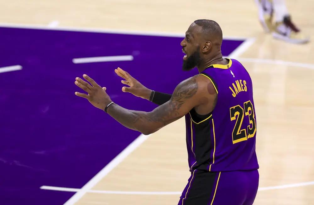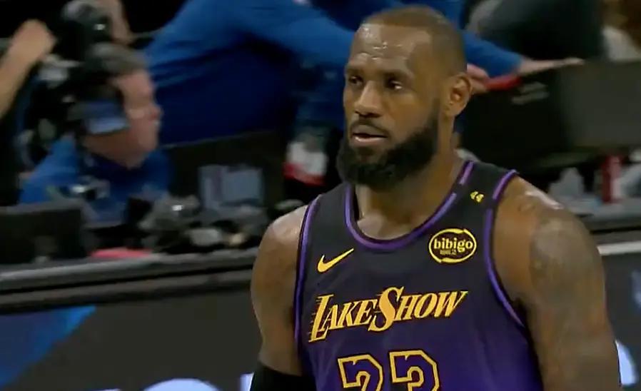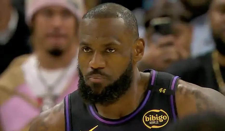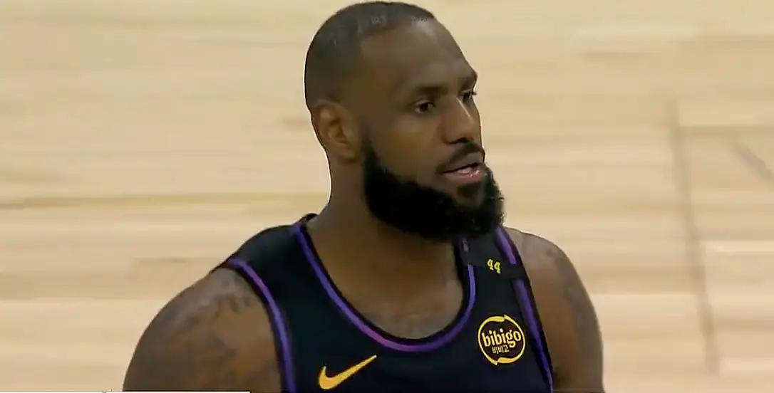 半场结束前,老詹打算利用身体优势冲击篮下,却变成进攻犯规。好在浓眉投篮不中,老詹补篮得分。半场比赛,詹姆斯10中2只拿到5分,湖人44-56落后。