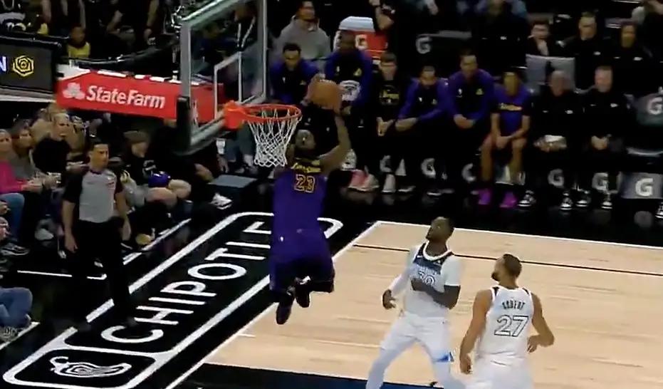 这也是詹姆斯本节的唯一一次得分,三节结束,湖人依旧落后15分,老詹朝着得分上双,又前进了一步。