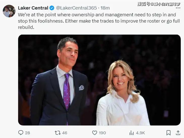 湖人媒体Laker Central:我们正处于所有权、管理权被玩弄的愚蠢阶段。我们要么交易改善阵容,要么进行全面重建。