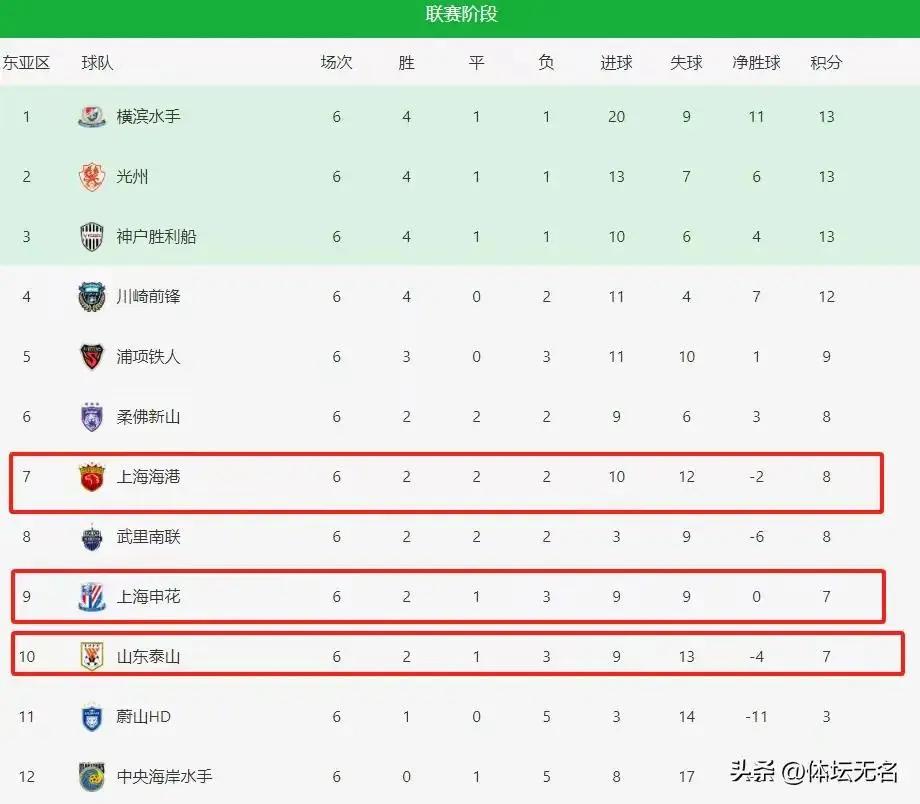 而我们的三强,上海海港8分排第七,上海申花和山东泰山则积七分分别排在第9和第10位。不管是谁,下一步出线都非常困难。