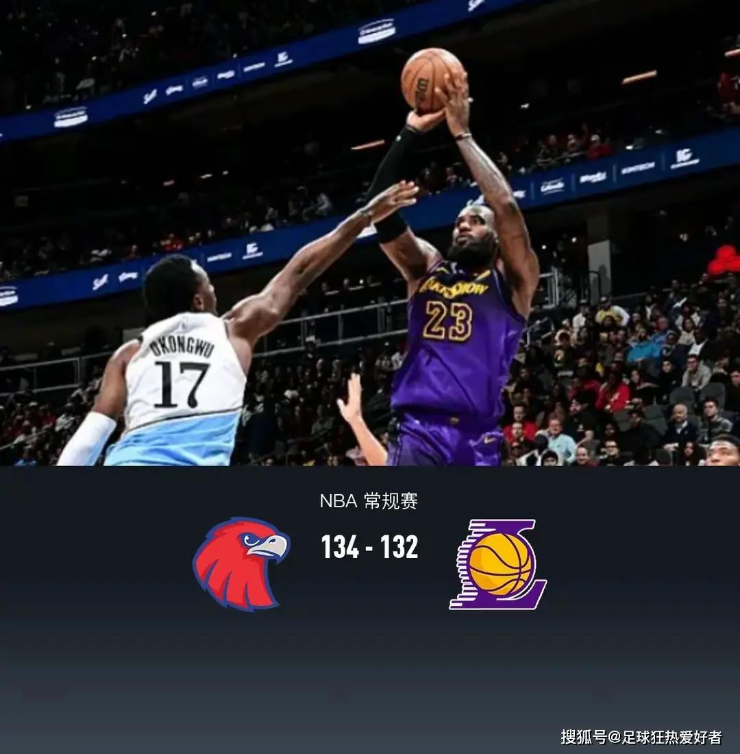 最后时刻老鹰特雷杨三分绝杀,回头湖人詹姆斯追身三分不中,最终老鹰134-132湖人。