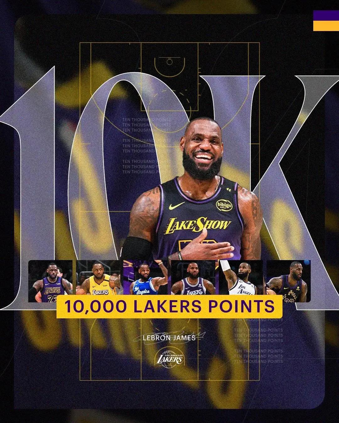 北京时间12月20日,洛杉矶湖人今天在客场以113-100战胜萨克门托国王,湖人球星勒布朗-詹姆斯出战34分钟,21投8中得到19分6篮板7助攻1盖帽,他本场比赛让自己的湖人生涯总得分达到10000分!