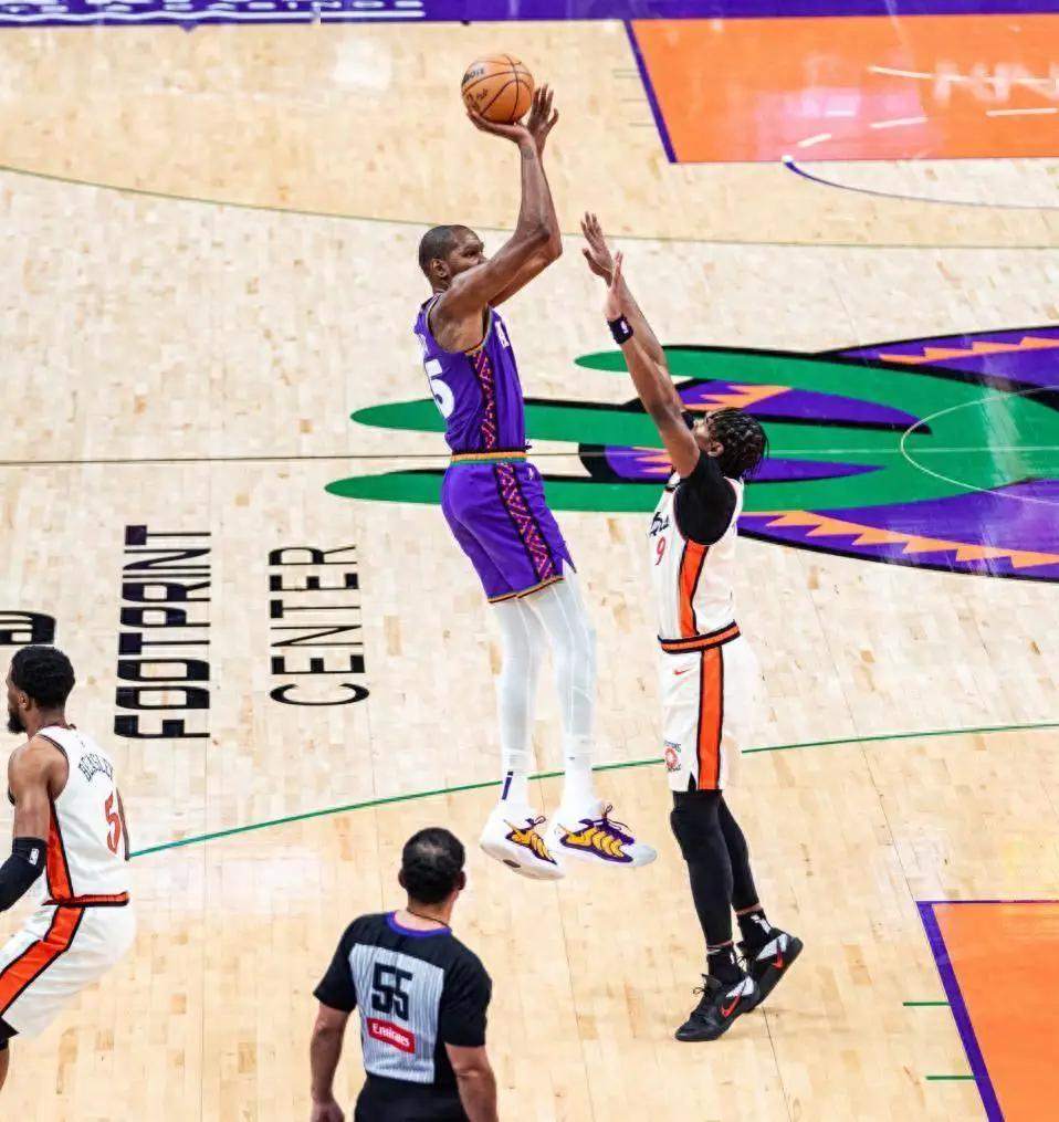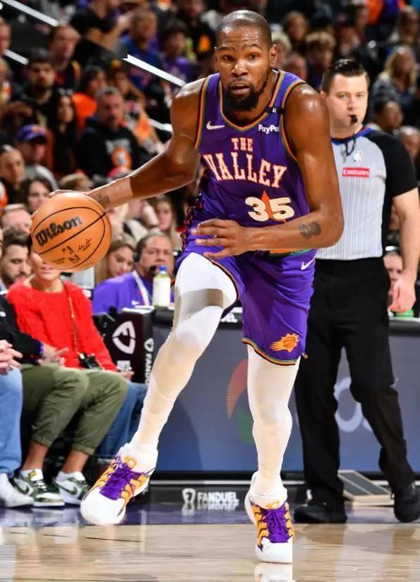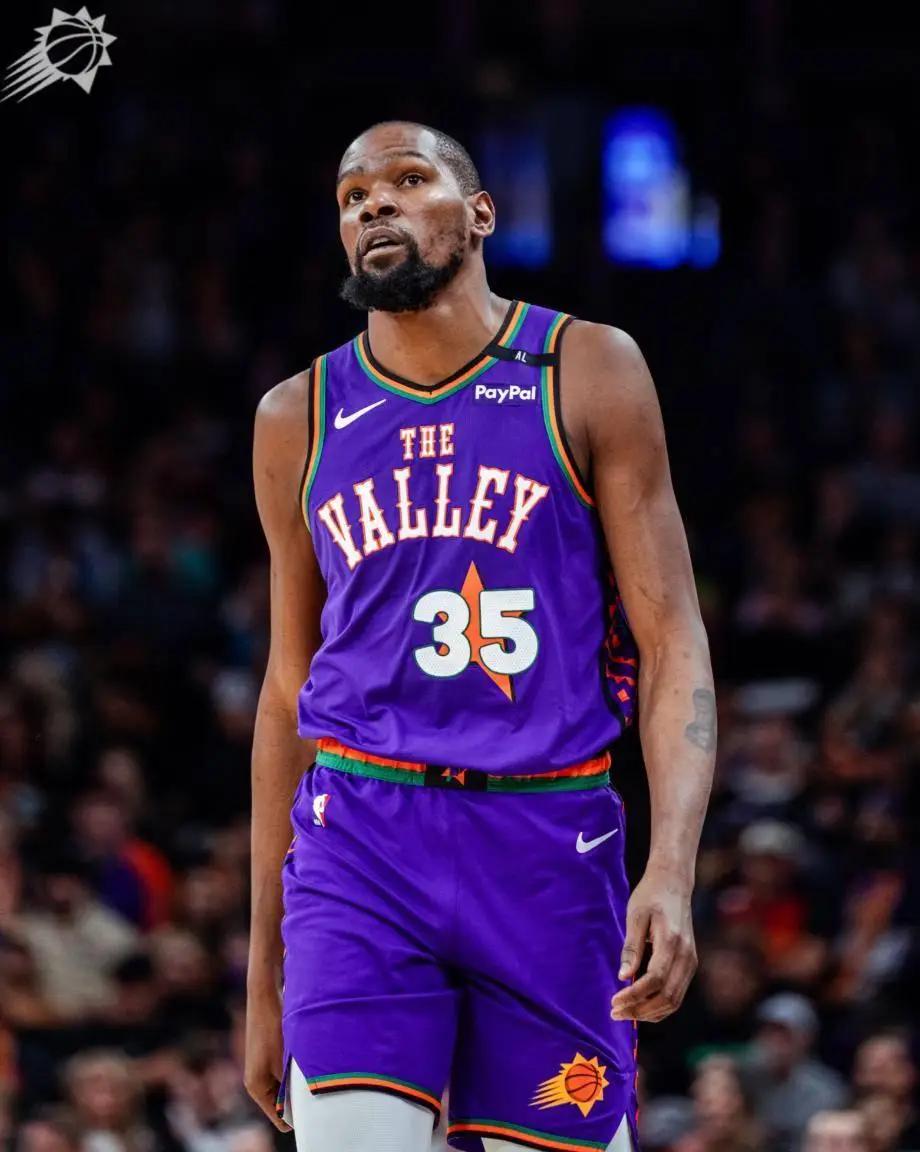 末节KD并没有休息继续打,进入最后6分半太阳还落后8分,杜兰特助攻小奥三分命中缩小到5分,KD一防一攻尽显超巨风采,比尔又被点名,还是靠KD中投,太阳的防守太差,进入2分钟还是落后5分,比斯利中三分,KD三分回应不中,艾维两罚全中领先到8分,KD突破造犯规还没放弃,坎宁安制胜一击,KD传球失误。KD末节13分4助攻都输。