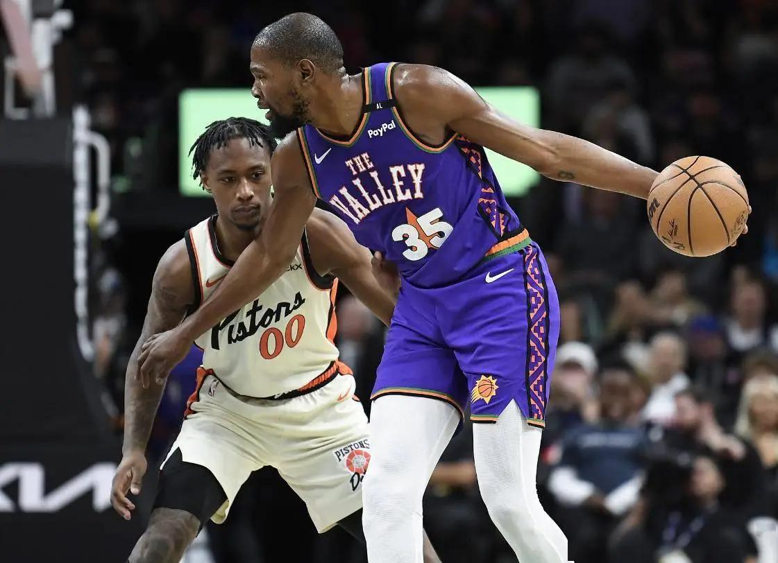 北京时间12月22日,菲尼克斯太阳以125-133不敌底特律活塞遭遇二连败。首节打完活塞领先太阳15分,第二节打完太阳缩小到只差5分,第三节打完活塞又拉开到9分,末节KD带队疯狂追分只可惜活塞关键球不手软,最终KD连续两场拿下35+都输球,KD在场太阳13胜4负,输掉的第四场。