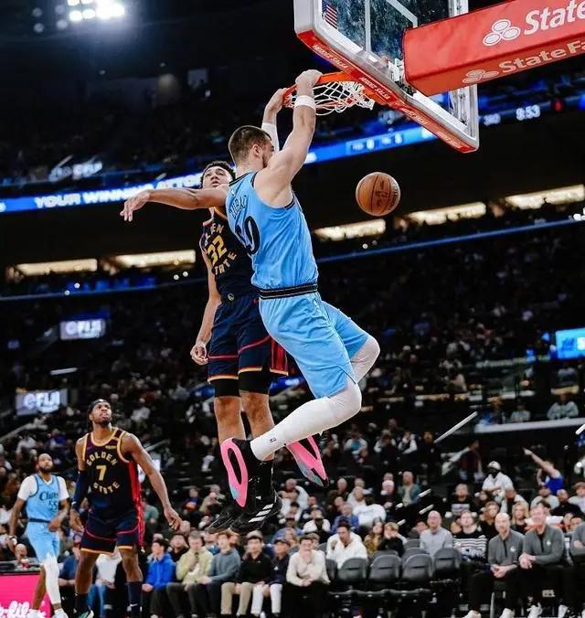 在哈登的巧妙调度下,快船队在主场展现了一场如行云流水般的比赛。六位球员得分上双,彰显了团队的均衡实力。祖巴茨延续了他本赛季一贯的稳健表现,投篮命中率高达80%,贡献了17分、11个篮板、2次助攻以及5次封盖。鲍威尔更是轻松地拿下了26分,而新援德里克·琼斯则凭借其扣篮王的实力,在第三节的一次进攻中,当鲍威尔的三分球未能命中时,琼斯从侧翼疾驰篮下,完成了一记令人惊叹的单臂暴扣。最终,琼斯以14分、6个篮板、2次助攻和2次抢断的成绩,为球队捍卫主场立下了汗马功劳。