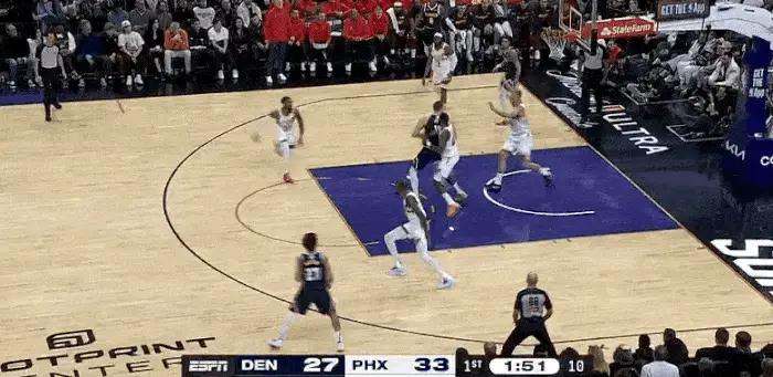 下半场回来,主场作战的太阳突然发力,杜兰特率队将分差拉大到了两位数,掘金最终败下阵来!约基奇轰下25分15篮板2助攻2抢断的数据,杜兰特则是拿到26投9中拿到27分为太阳获得一场胜利!