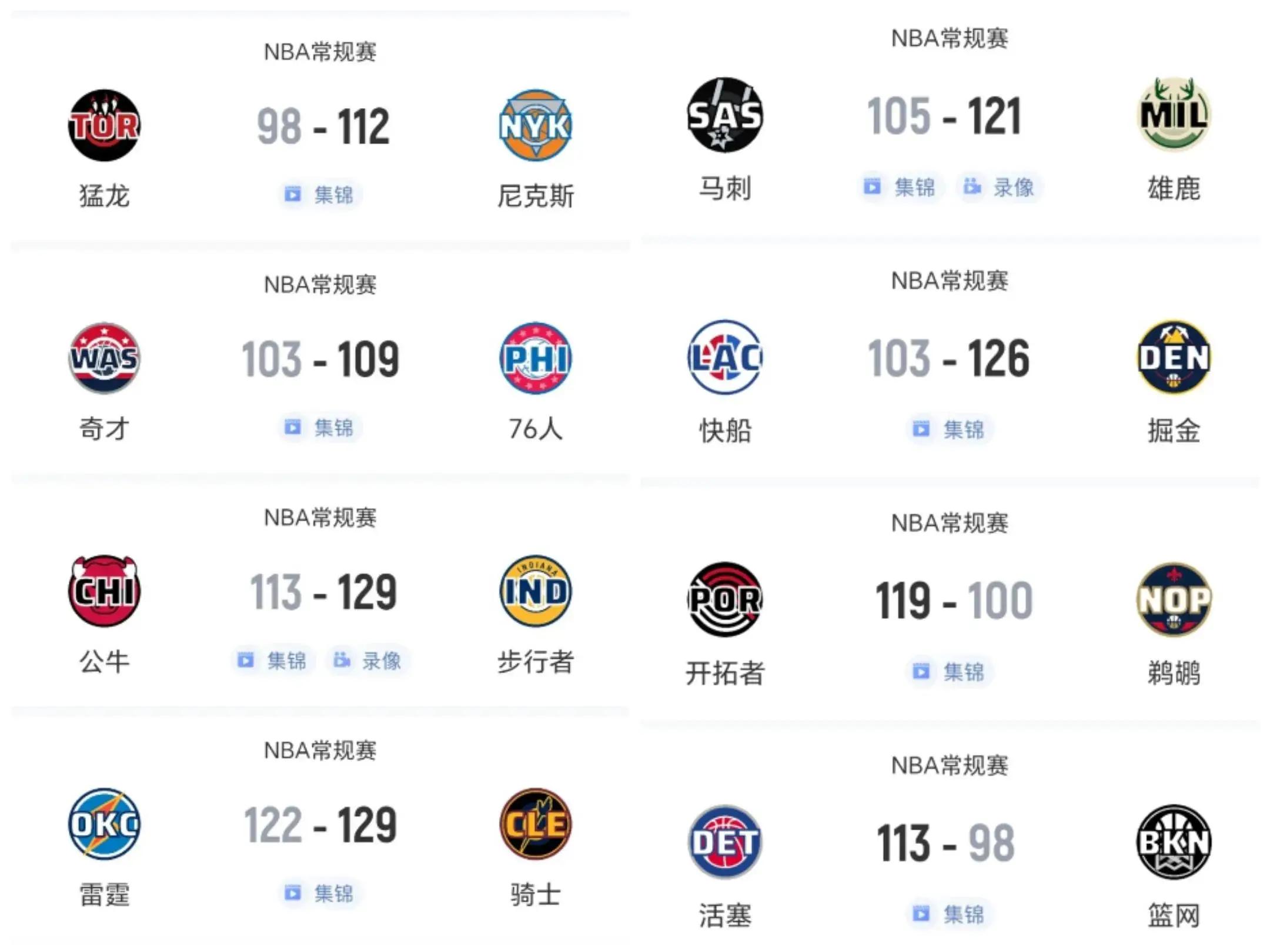今日赛过果,快船落败,马刺跌第10!