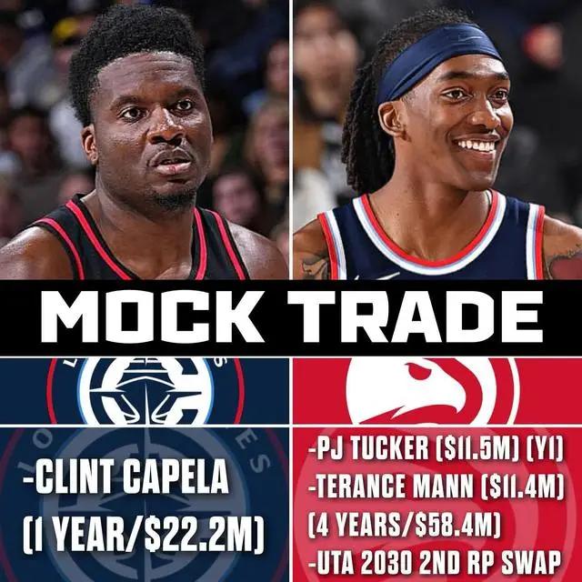 今天,有美国媒体报道说,快船可以考虑和老鹰进行一次3换1的交易。具体内容是:快船送出曼恩、塔克以及2030年从爵士来的次轮选秀权,换来老鹰的卡佩拉。之前,老鹰为了给奥孔古更多的出场时间和表现机会,已经决定将卡佩拉放到交易市场上了。