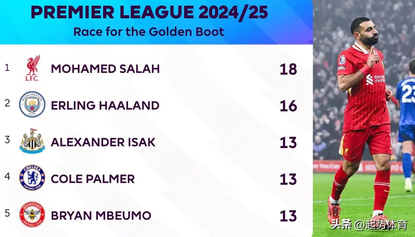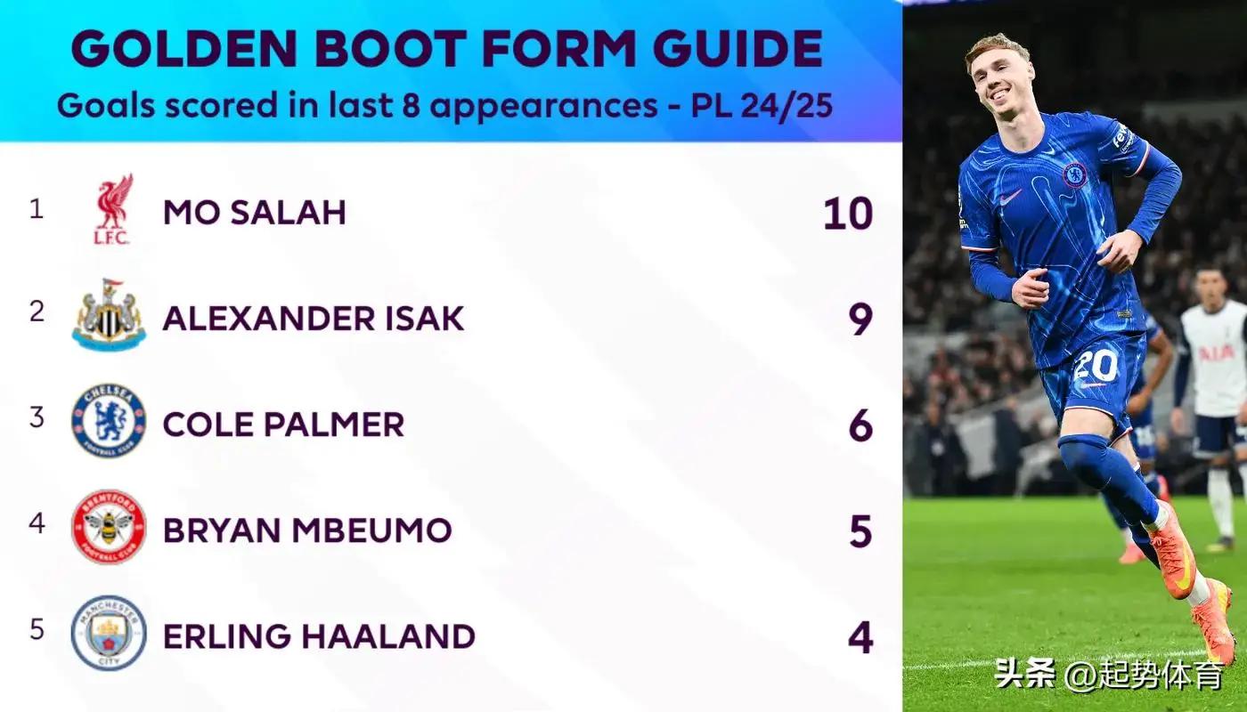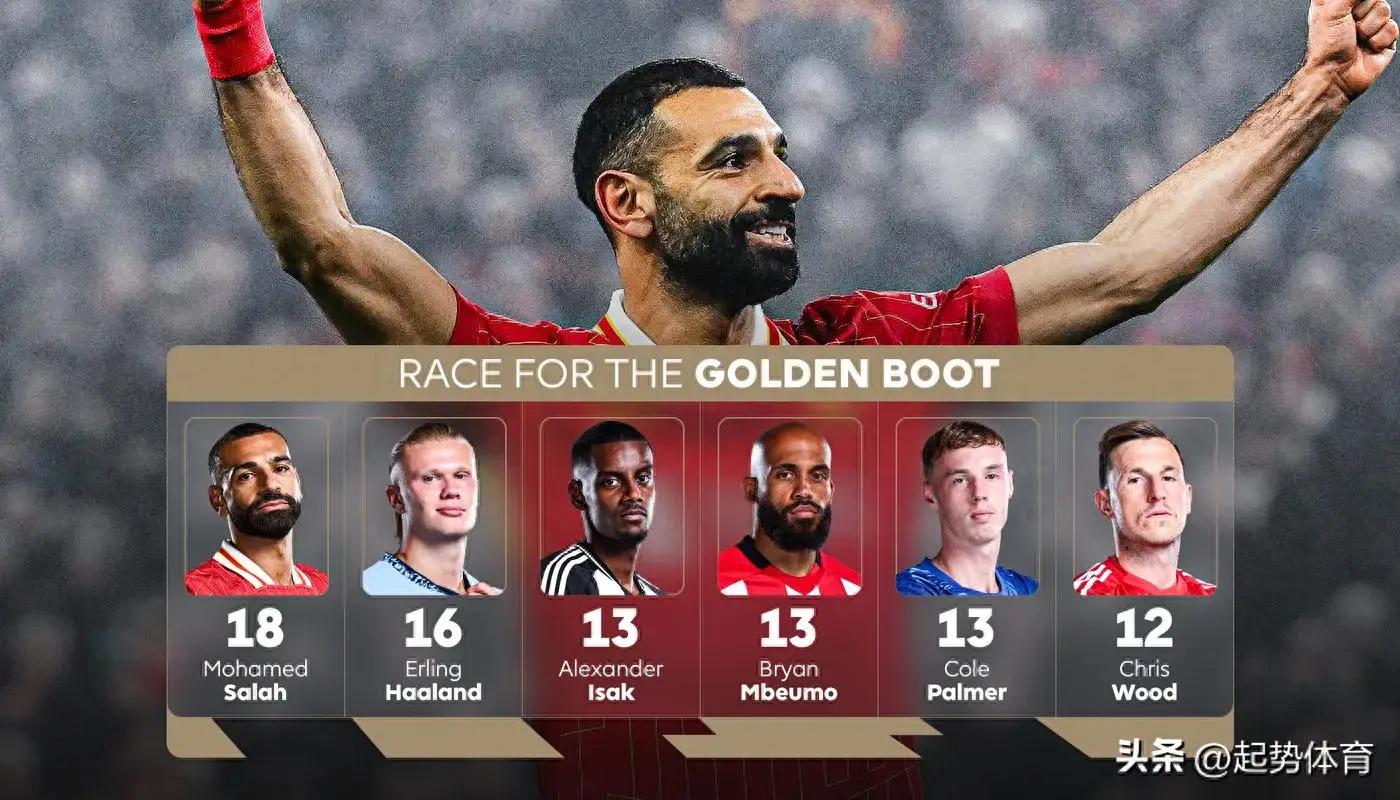 但不要低估伊萨克、帕尔默和姆贝莫等人,他们状态极佳,每人都进了 13 球,仍然在追逐金靴奖。克里斯·伍德仅落后一球,以 12 球排在第六位。