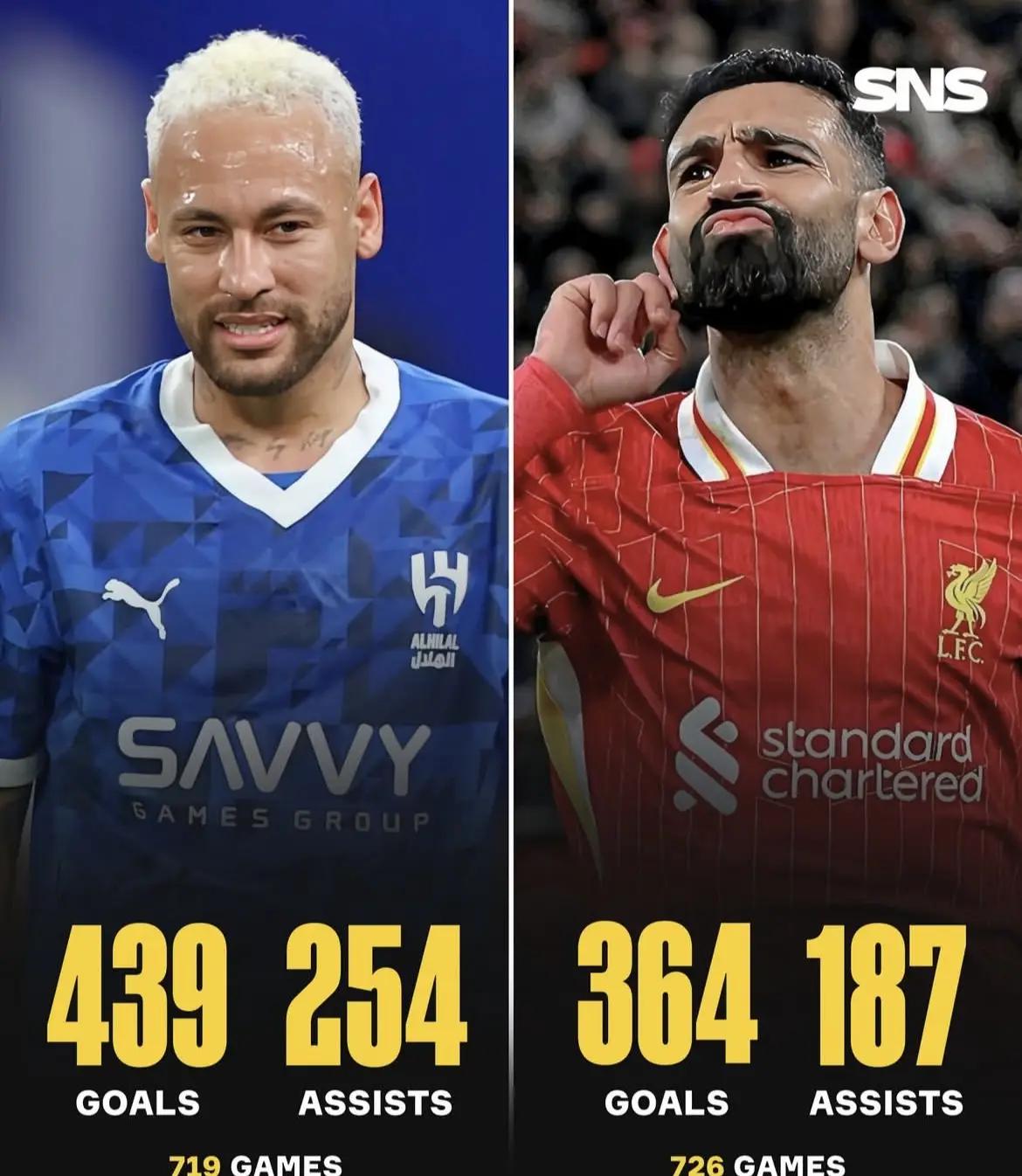 从综合数据来看,内马尔在进球和助攻效率上均优于萨拉赫,尤其是在整体进攻贡献方面显示了压倒性的优势。然而,萨拉赫凭借其职业生涯的稳定性和在英超中展现的持久表现,则呈现出了另一种成功模式。这一对比不仅突出两位球员各自的独特特点,更反映了现代足球中不同风格的巅峰演绎。无论是内马尔的华丽风格,还是萨拉赫的高效运作,他们都毫无疑问地占据了当代足坛超级巨星的宝座。