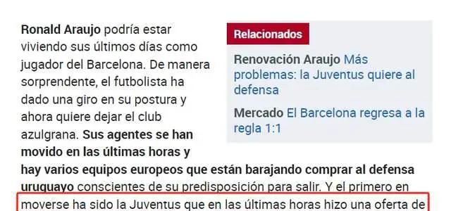 巴萨标价将阿劳霍定为7000万至8000万欧元——也就是说,尤文需要将其报价翻倍才有可能打动巴萨。尽管尤文的第一份报价被拒绝,但这支意甲豪门并不会轻易放弃。据称,尤文可能会考虑将报价提高至5000万,然而,如果不能接近7000万,巴萨则不会轻易做出让步。