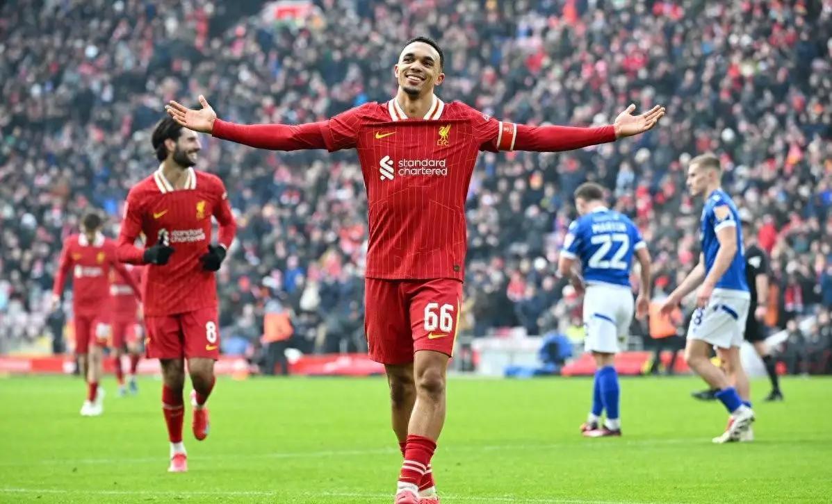 就在利物浦4比0击败阿克灵顿的英格兰足总杯第3轮比赛当中,利物浦的超级后卫阿诺德,在上半场搞了个远射破门。