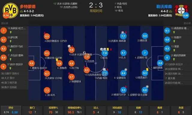 在这场比赛中,多特蒙德排出了4132阵型,首发阵容的总价值达到了3.04亿欧元;勒沃库森则采用了442阵型,首发阵容的价值为2.84亿欧元。