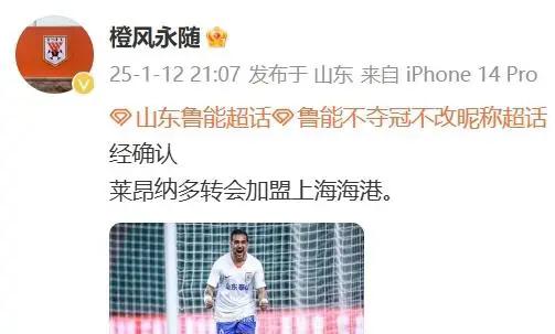 北京时间1月12日,专注山东泰山资讯的知名博主“橙风永随”爆料,确认山东泰山的外援射手莱昂纳多将在冬季转会窗口加盟争冠竞争对手上海海港。