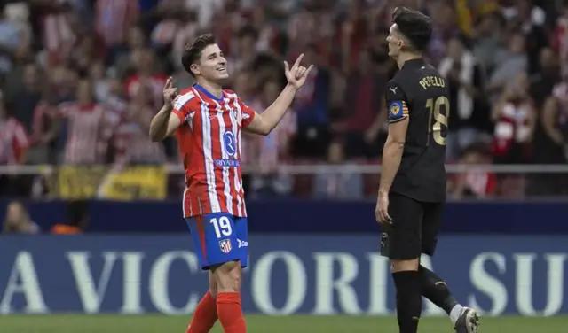 比赛中,第6分钟,格里兹曼门前抢点破门,但主裁判经VAR回放确认这球手球在先进球无效。第12分钟,西蒙尼右路长驱直入送出横传,阿尔瓦雷斯跟进推射没有打上力量被门将扑住。第54分钟,马竞右侧战术角球开入禁区,阿尔瓦雷斯接队友头球回做将球打进,马德里竞技1-0奥萨苏纳。登顶西甲榜首。
