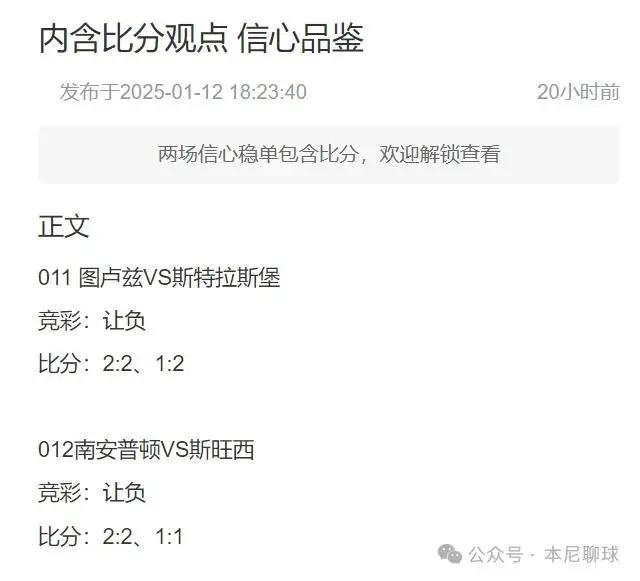 昨天又命中了比分,回归以来比分天天都能拿捏,上了车的兄弟们都是有盈利的。可惜斯旺西让负没能拿下。昨天本尼看好的多场比赛方向都是没问题的,坚持不推蚊子肉是本尼的原则,低水的即使再稳咱们也看不上。言归正传聊回今天的比赛,今天主任给到两场联赛。本尼已经连红了五天了,今天在这里分享下对比赛的看法