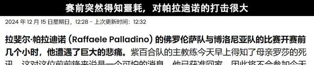 但在对博洛尼亚的比赛前,主教练帕拉迪诺的母亲突然去世,这一打击对球队产生了负面影响,佛罗伦萨状态一落千丈,五场比赛未能获胜。