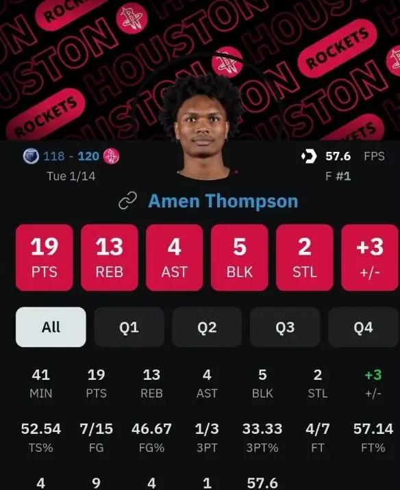 比赛伊始,火箭队显得有些手忙脚乱,首节便落后了7分。半场结束时,火箭依然落后3分。尽管灰熊的莫兰特带领球队在第三节一度拉开至13分的差距,但火箭队的顽强表现证明了他们的韧性。在第四节,火箭队彻底换了个面貌,特别是阿门-汤普森的攻防两端表现堪称“致命”。尤其是在最后1分35秒,他完成了一个空接暴扣,帮助火箭反超比分,并最终锁定胜局。