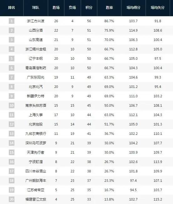 这一轮的比赛结束后,CBA排名也发生了不小的变化。四强方面,广厦男篮和山西男篮都在这轮比赛中战胜了各自对手,依旧排在前两位。辽宁男篮之前排在第三位,但在这轮比赛输球后再次掉出了四强,山东男篮取而代之排名第三。浙江男篮虽然也在本轮比赛中输球,不过却因为在得失分率上占优,排名反而上升了一位,再次进入四强排名第四。