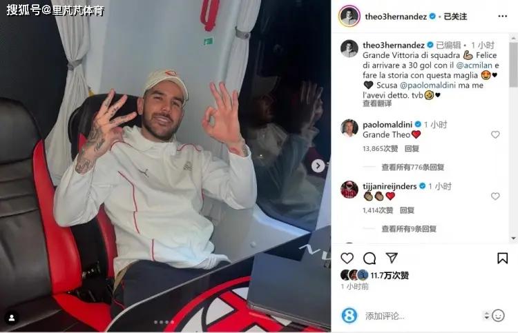 赛后特奥在社交媒体上写道:“很棒的团队胜利!很高兴为米兰攻入30球,身穿这件球衣创造历史。抱歉马尔蒂尼,但你告诉过我(去打破纪录)。”