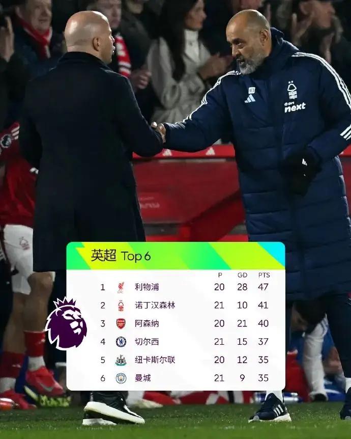 红军联赛两连平+连续16轮不败,少赛1轮积47分,继续以6分优势领跑。森林7连胜被终结,积41分位居第2。