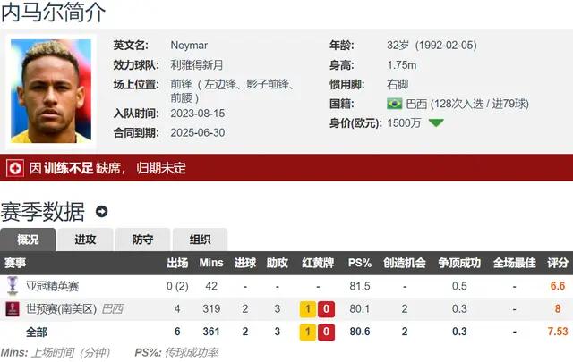 去年内马尔遭遇了重大伤病,考虑到球队在沙特超联赛中的外援名额已满,利雅得新月本赛季只为内马尔在亚冠精英联赛注册,因为亚冠没有外援名额限制。