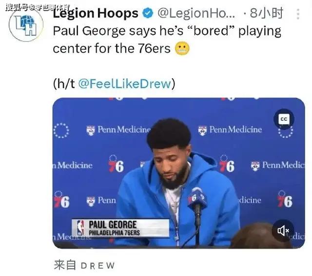 说到保罗·乔治,今天大家都在聊这位“昔日明星”球员和费城76人队的尴尬关系。