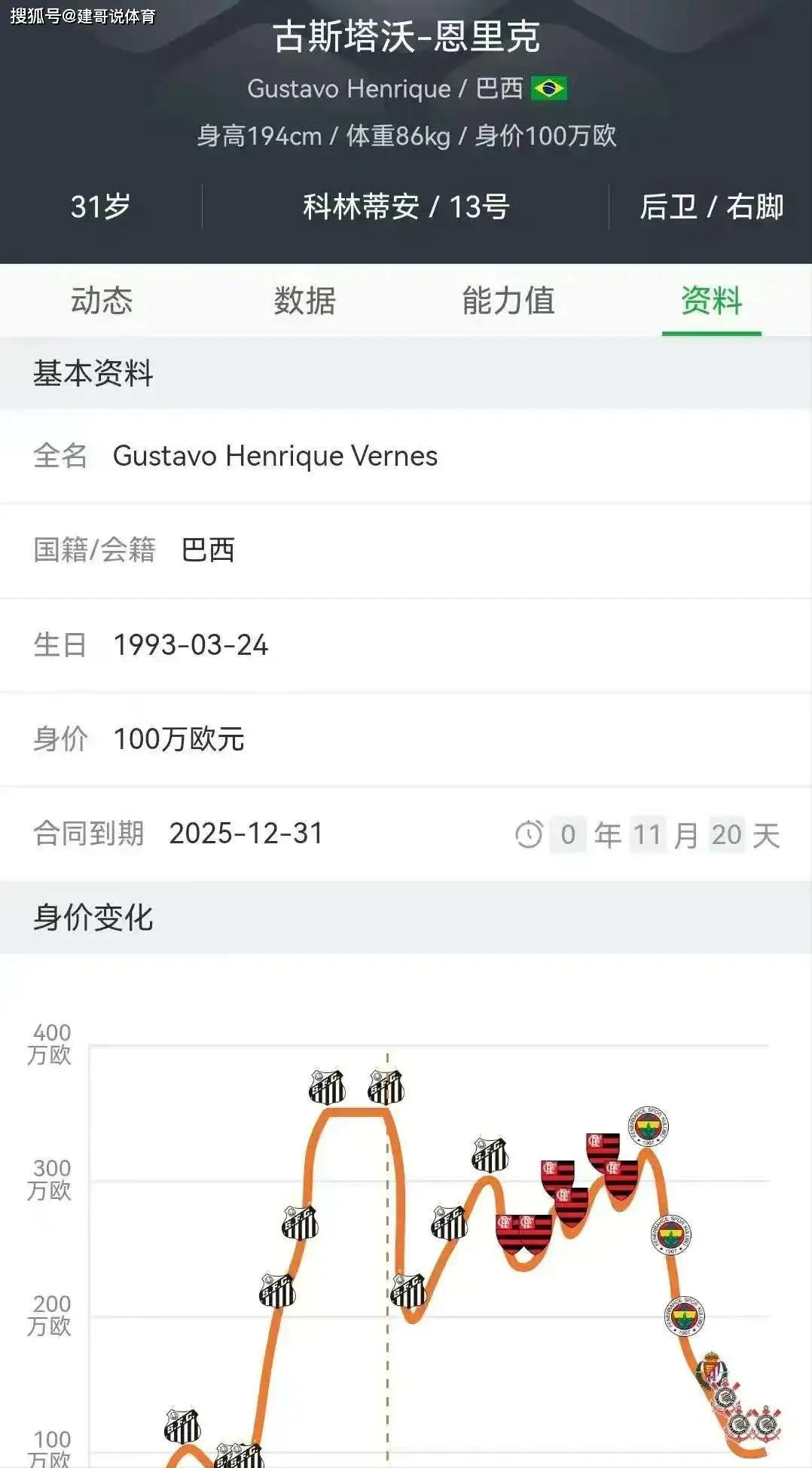 1993年出生的古斯塔沃恩里克目前效力在巴甲科林蒂安队,身高达到了1米94,是一位不折不扣的高大中卫,虽然古斯塔沃恩里克无论是身高还是所踢的位置都非常适合山东泰山队目前的引援,但从他是一位拥有99万粉丝的大网红身份来看,他好像就不是山东泰山队未来的外援中卫人选了,之前山东泰山队中的网红中卫戴琳就是经常直播,导致了很多泰山球迷的不满,戴琳在赛后的直播也感染了泰山队中的另一位球员郭田雨,当郭田雨也和戴琳一样成为了开直播的职业球员后,他们的行为也导致了一些泰山球迷认为,这不是职业足球运动员该做的事情。