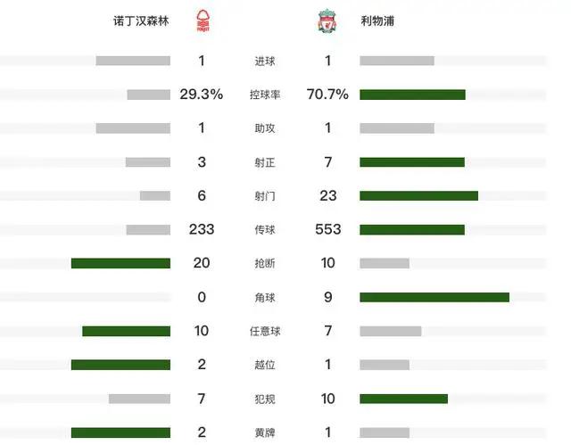 其他精彩时刻包括穆里略在第10分钟的远射机会、迪亚斯在第24分钟的射门偏出、以及若干次利物浦和诺丁汉森林之间的拉锯战。技术统计显示两队在比赛中均有不俗表现。