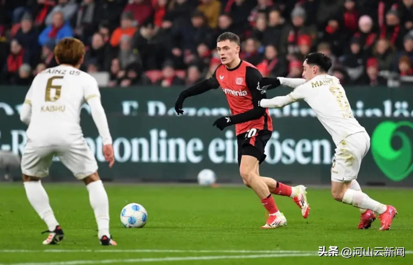 在对美因茨的比赛中,勒沃库森完全掌控了场面,上半场的攻势极为强劲。第8分钟,希克的传球被对方防守解围;第23分钟,因卡皮耶的低射滑门而出;第41分钟,维尔茨的抽射被门将神奇扑出。尽管如此,双方的上半场仍未能破门,0-0平局。下半场,勒沃库森终于在第49分钟打破僵局,格里马尔多主罚任意球直接破门,皮球越过人墙后直挂死角,帮助球队领先。尽管他们未能进一步扩大比分,最终以1-0小胜美因茨。