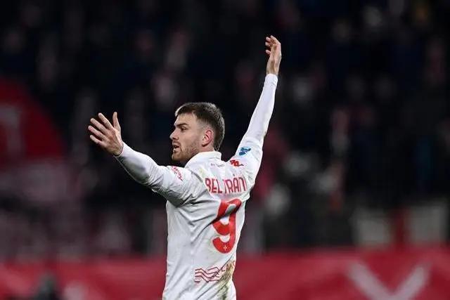 第71分钟,贝尔特兰造点,自己主罚命中,比分变成了1:2。