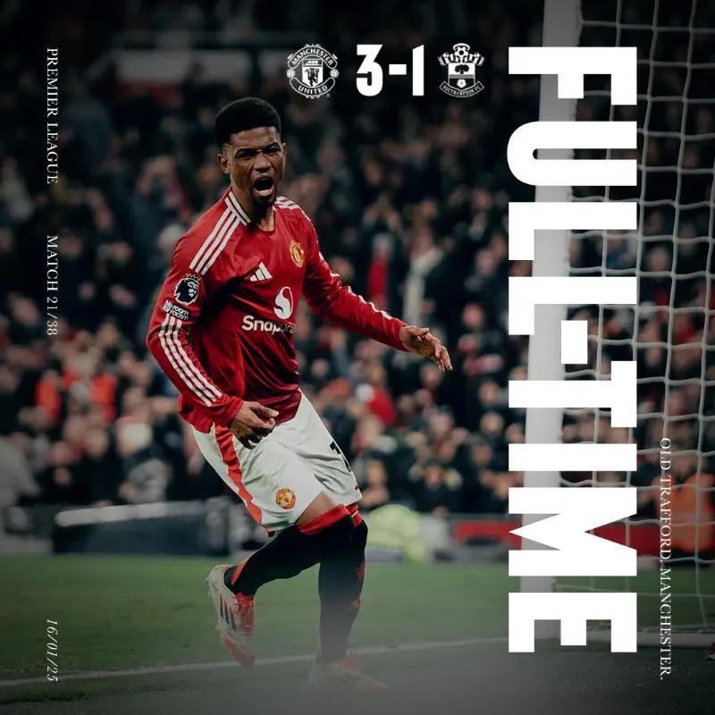 北京时间1月17日04:00,英超第21轮,曼联坐镇主场老特拉福德迎战南安普顿。上半场,加纳乔失良机,奥纳纳神扑救主,乌加特不慎自摆乌龙。易边再战,安东尼错失空门良机,阿玛德连进三球救主。最终曼联3-1南安普顿。积分榜方面,曼联近五轮首胜26分暂升第12,南安普顿6分依旧垫底。