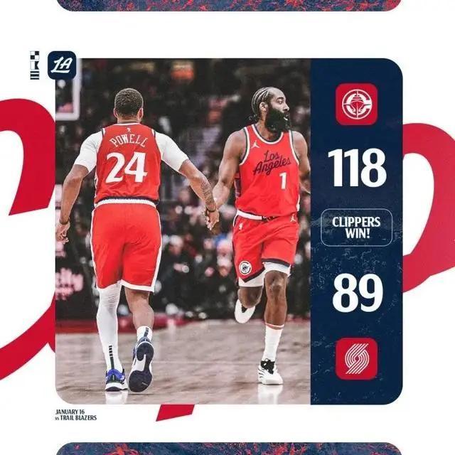 经历不敌明尼苏达森林狼、丹佛掘金,遭遇两连败的洛杉矶快船,瞬间被打通任通二脉,面对迈阿密热火、布鲁克林篮网、波特兰开拓者三支球队,除了第一场,剩下两场,都是轻松大胜,目前处于三连胜阶段,以二十三胜十七负,排在西部第五。需要重点强调的是,本场比赛,詹姆斯哈登二十八分钟左右,投篮十六中七,拿到19分2篮板6助攻,鲍威尔出战二十七分钟左右,投篮十二中七,拿到23分5篮板3助攻,两人组成的后场双枪,共享赢球封面。