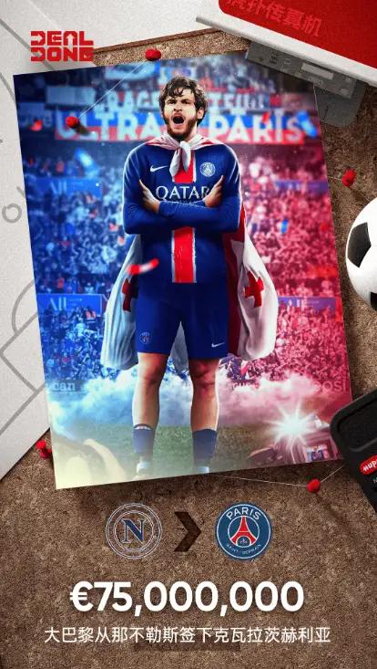 随着这次转会巴黎圣日耳曼,克瓦拉茨赫利亚将接过象征着荣耀与挑战的7号球衣,成为这家法国豪门历史上首位来自格鲁吉亚的球员。对于这笔超过7000万欧元的转会投资,球迷们都在期待着这位年轻边锋能否在巴黎的大舞台上继续闪耀光芒,证明自己不仅是一位潜力无限的新人,更是一名能够在顶级联赛中稳定输出的关键球员。