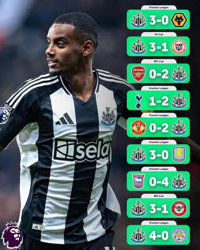 从 12 月 7 日以来,纽卡就像开了挂一样,一直在赢球,各项赛事已经取得了令人惊叹的 9 连胜。在这波 9 连胜期间呀,纽卡那可真是遇神杀神,遇佛杀佛,先后赢下了维拉、曼联、热刺、阿森纳这些实力超强的强队呢。要是单看联赛,纽卡更是势不可挡,拿下了 6 连胜。在这 6 场英超胜利中,纽卡那进攻火力简直太猛了,疯狂打进了 18 球,场均 3 球呀,而且一共才丢了 1 个球,这防守也是相当出色呀。