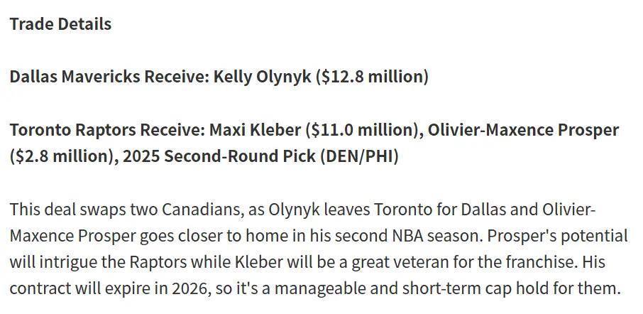 只需要独行侠管理层,以马西·克莱伯、奥利维尔-马克斯·普罗塞尔以及一个宝贵的2025年次轮选秀权作为诱饵,就可以推进一笔交易的完成,届时他们将会得到曾效力于凯尔特人、身经百战的前场球员奥里尼克。对于这笔交易,很快引来了质疑,独行侠阵中已经有了莱夫利和加福德两位内线猛兽,得到奥里尼克只会导致重叠位置,各球员很难有所发挥,但不可忽视奥利尼克的功能性,这位经验丰富的老将,可以像一把锋利的匕首,能够在五号位上撕开对手的防线,尽可能拉开球场空间,成为进攻端的奇兵。