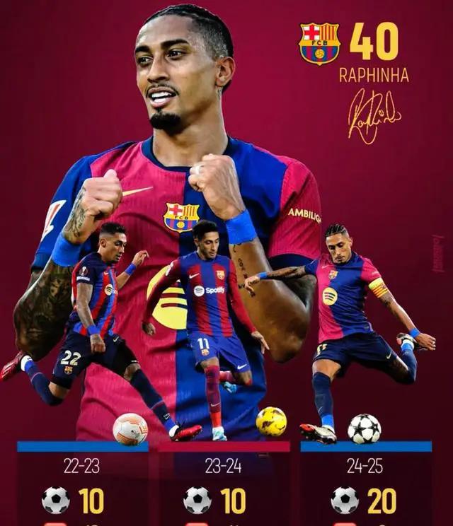 与此同时,我们不能忽视拉菲尼亚,对于巴萨而言,他的重要性不言而喻。他不仅持续进行冲刺跑动,充分发挥纵深空间的价值,而且在与强队较量时,他的射门效率超越了亚马尔。在与皇马、拜仁的对抗,甚至是在欧冠客战多特蒙德中,拉菲尼亚始终是球队获胜的核心人物。