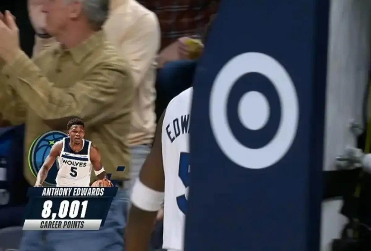 本场比赛前,爱德华兹生涯常规赛总得分为7990分。而在上半场拿到11分后,爱德华兹(23岁211天)生涯常规赛总得分突破8000分大关,他因此成为仅次于詹姆斯(22岁74天)、杜兰特(23岁166天)的历史第三年轻8000分先生。