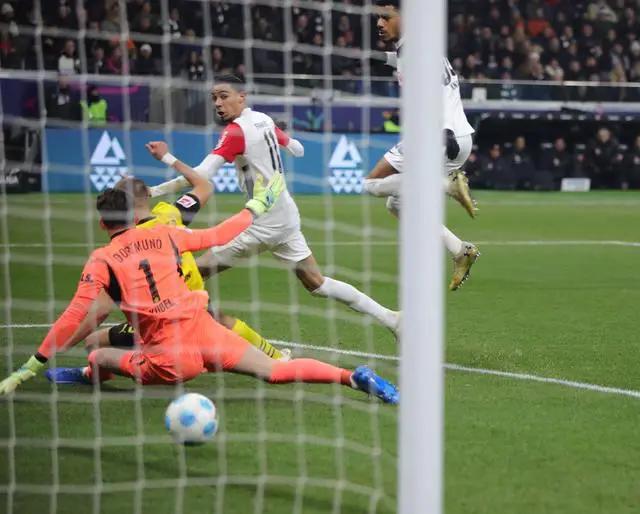 进入下半场,扬-科托与队友配合后进入禁区射门,却被特拉普用腿化解。第57分钟,吉腾斯在禁区左侧调整后的小角度射门轻松被特拉普扑出。过了不久,第81分钟,克瑙夫这次带球闯入禁区并将球传给克里斯滕森,但后者的射门被多特蒙德后卫封堵,科贝尔稳稳把球拿下。第89分钟,多特蒙德快速反击,替补上场的阿德耶米尝试扭射,但被特拉普轻松控制。最终,在第91分钟,霍伊伦抓住机会单刀破门为法兰克福锁定胜局,多特蒙德以0-2结束比赛。